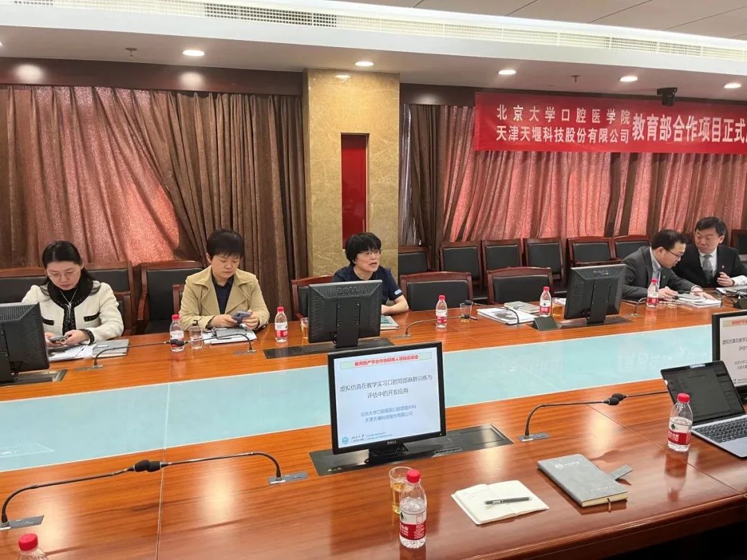 2023年4月24日,在这个春光明媚的日子里,北京大学口腔医院(北大口腔)与星空平台(天堰科技)召开“虚拟仿真在教学实习口腔局部麻醉训练与评估中的开发应用”项目启动会。北大口腔副院长李铁军、中华口腔医学会副秘书长刘宏伟、北大口腔教育处长董美丽、虚拟仿真教研室主任侯建霞、口腔颌面外科副主任贺洋、天堰科技总经理刘雁飞、天堰科技口腔事业部总经理景颖等人出席,在项目总负责人崔念晖主任主持下,双方展开了热烈而有成效的会晤,确定该项目正式启动。